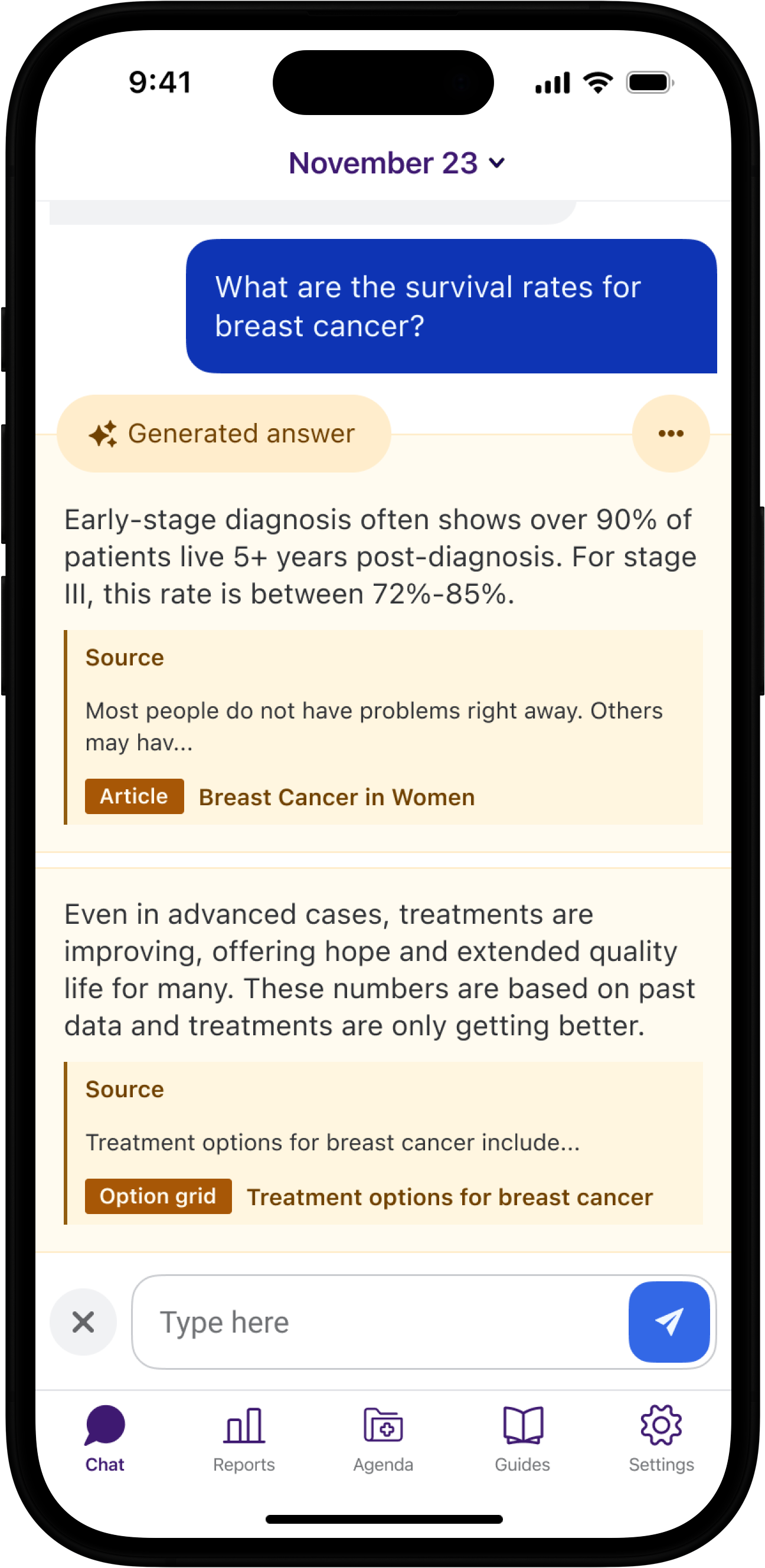 - Helping you understand treatment options, medication, and condition management through an AI-powered chatbot.