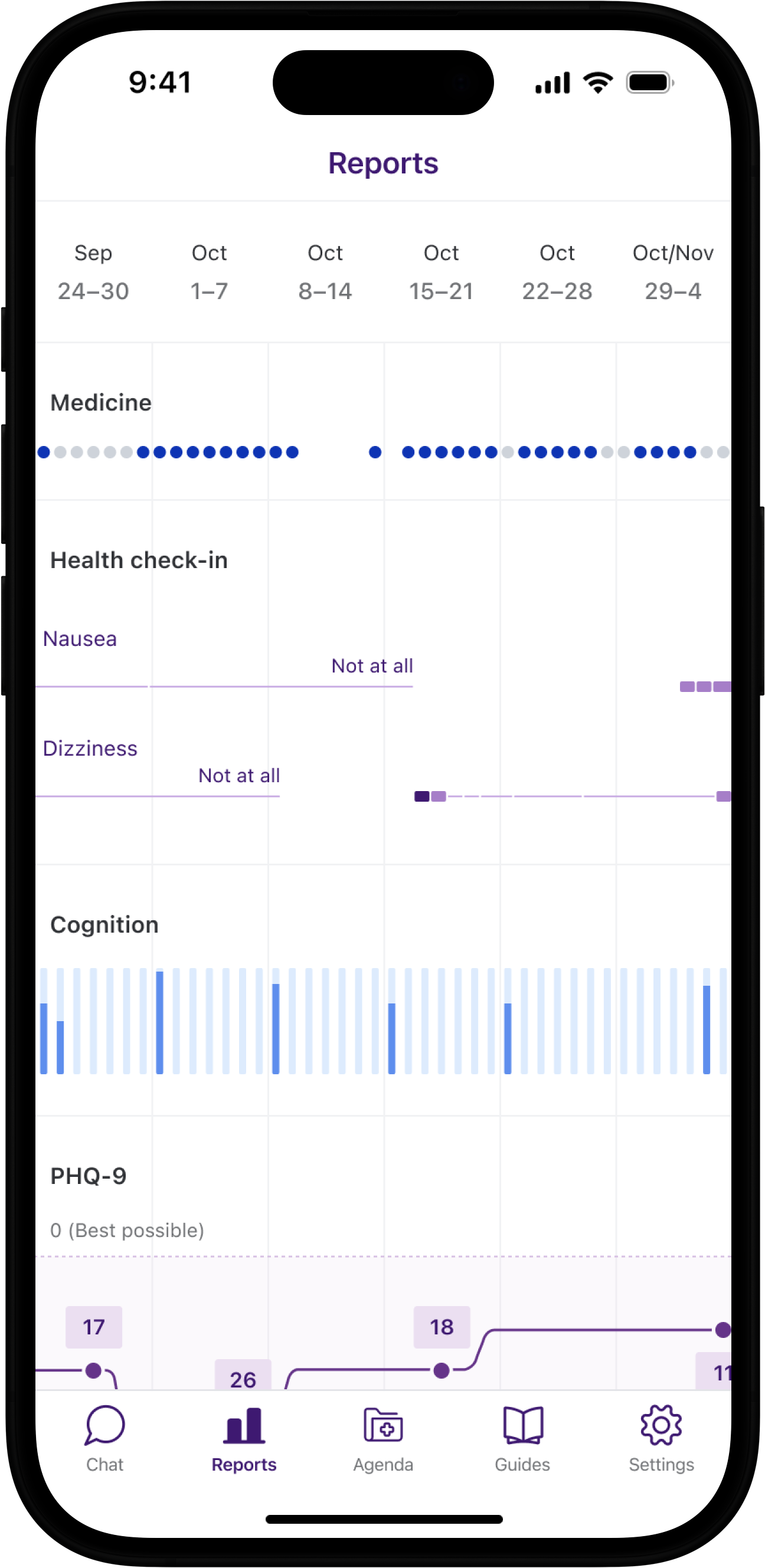 - Symptoms and side effects tracking