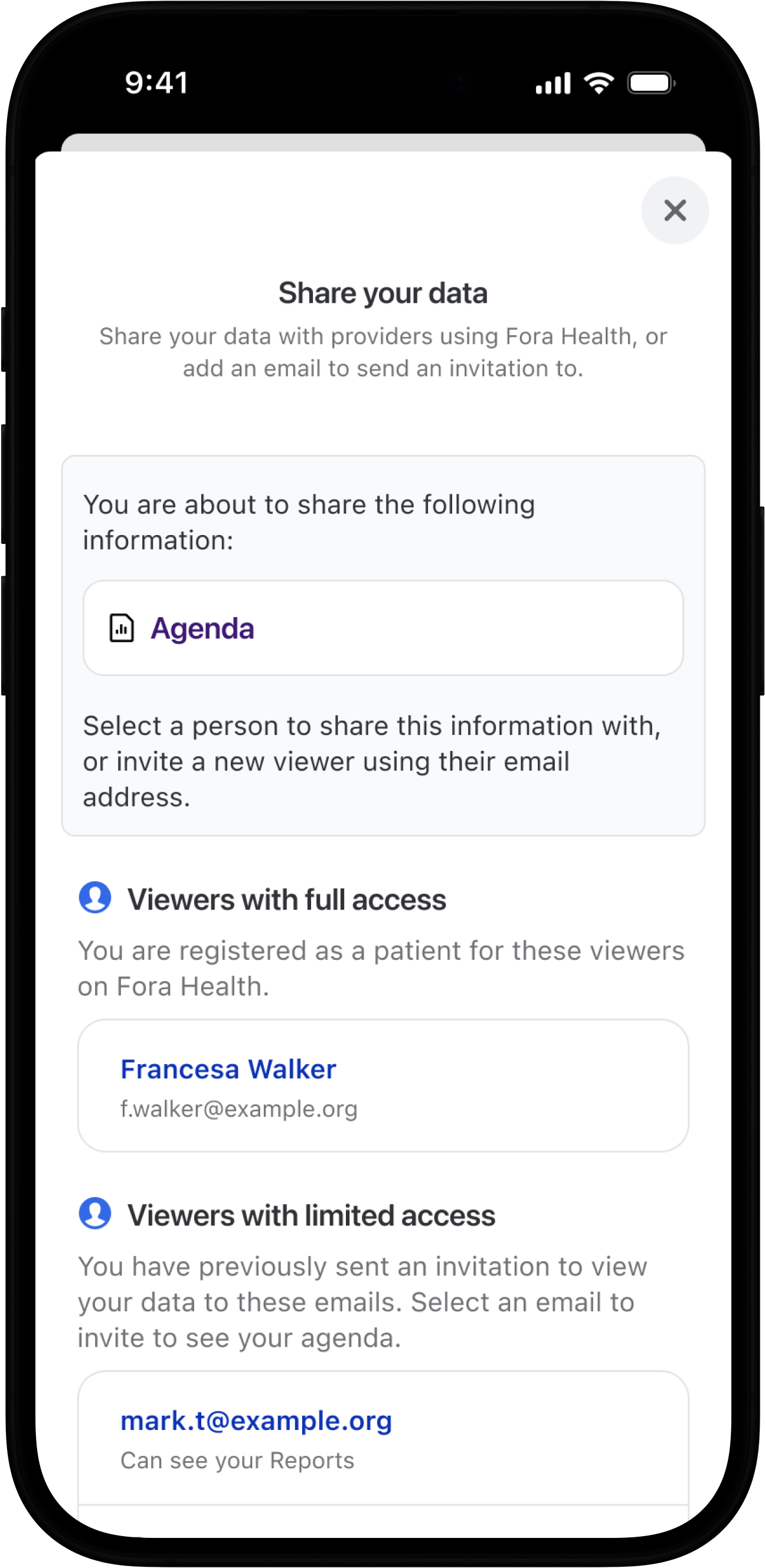 - You can also share information in Fora Health with your healthcare provider to help inform your healthcare discussions.